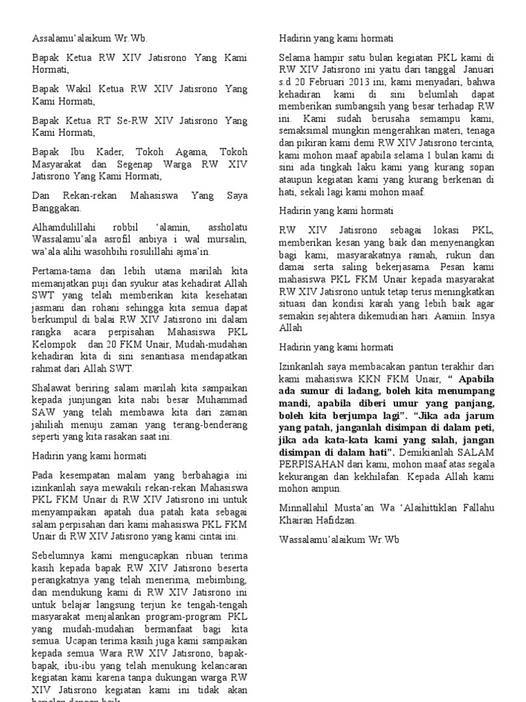 Contoh Kata Sambutan Untuk Perpisahan Ppl