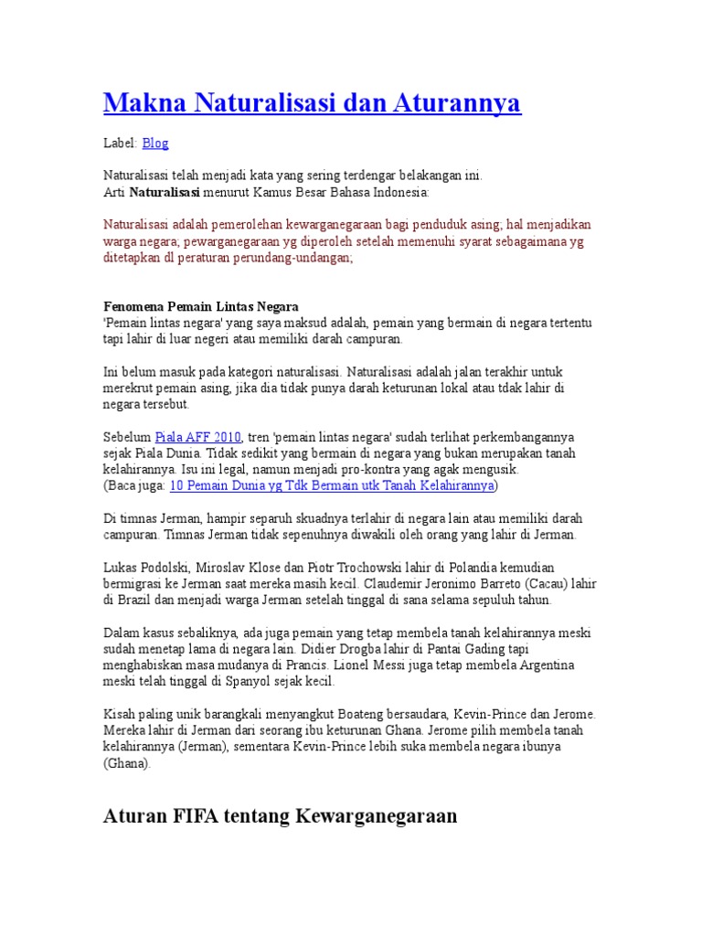 Pengertian Naturalisasi Pemain Sepak Bola Di Indonesia Pengertian Dan Definisi
