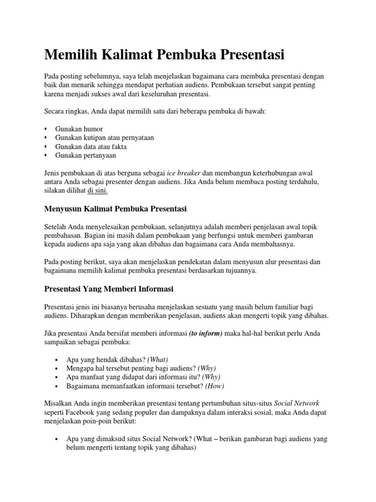 Doc Membuka Presentasi Dengan Baik Hjr Elvina Academia Edu