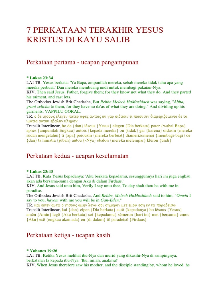 7 Perkataan Terakhir Yesus Kristus Di Sarapanpagi Biblika Facebook