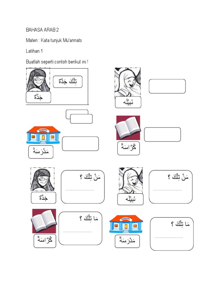 Bahasa Arab 2 Materi Kata Tunjuk Mu Annats Latihan 1 Buatlah Seperti Contoh Berikut Ini