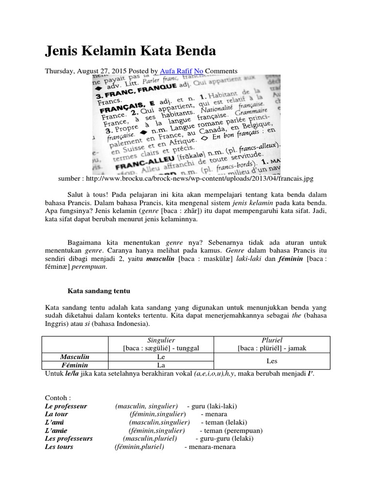 Contoh Kata Sandang Materi Pelajaran 1